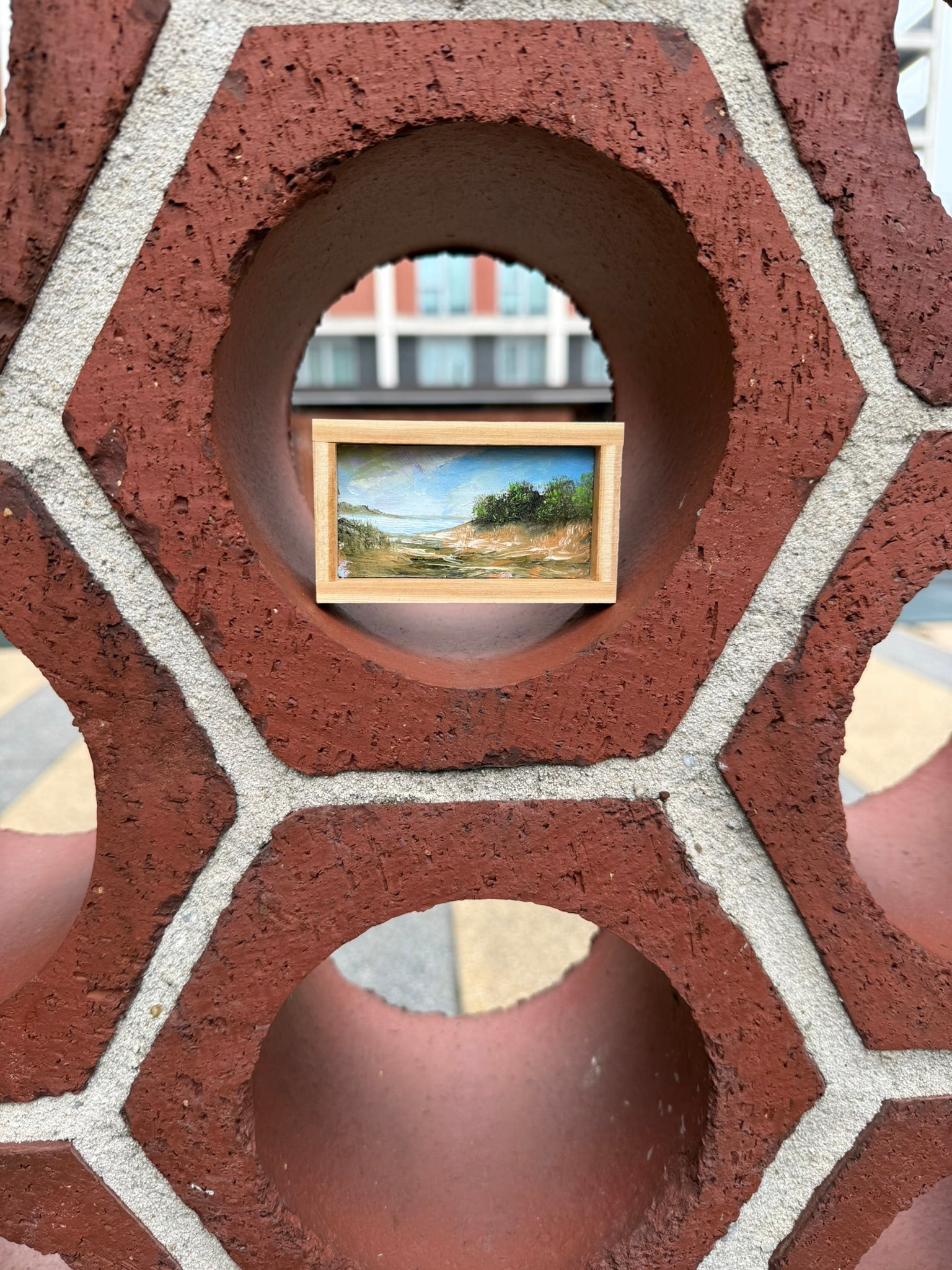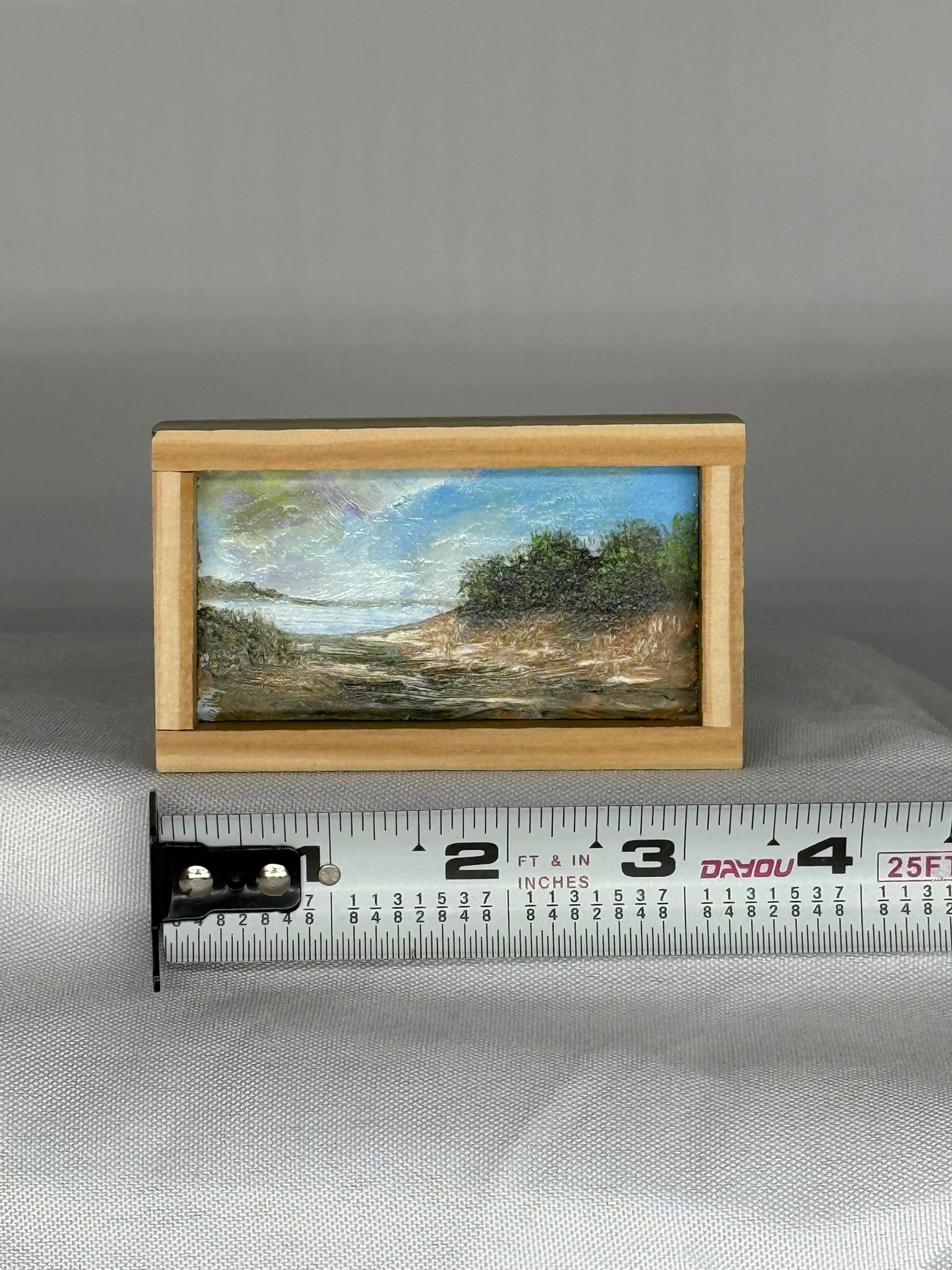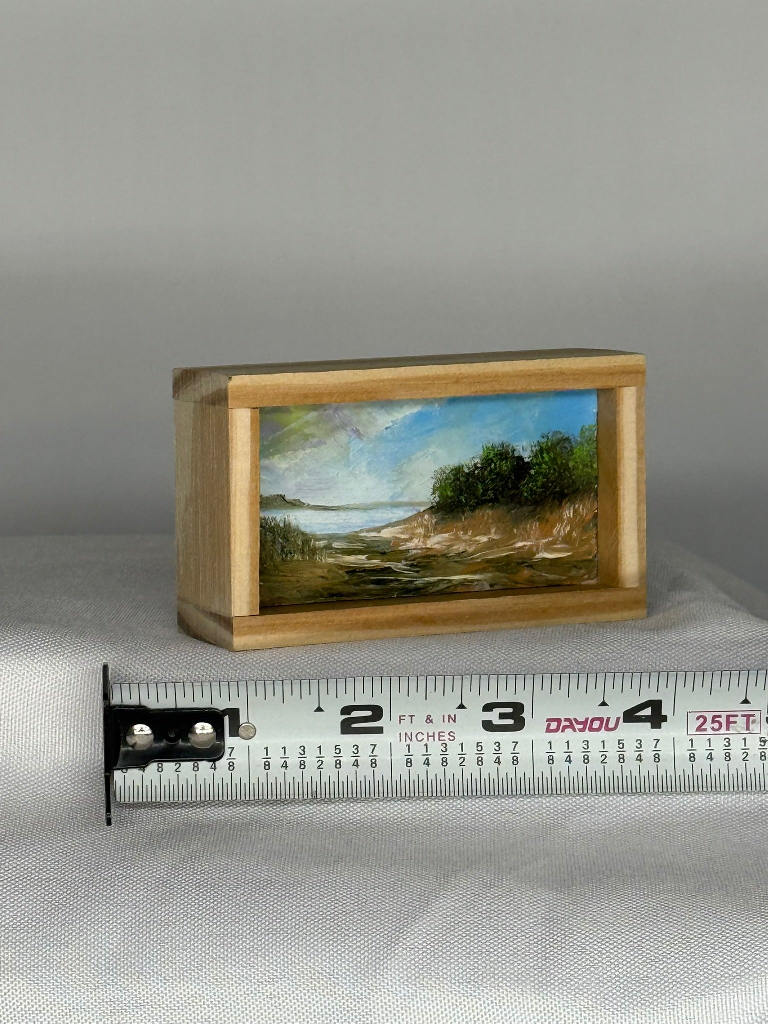 Mini Wood Block Painting #12. Oil on reclaimed wood. Framed in recycled framing material. Sizes range from 2” to 4” with and over all height of 1”. If there is a specific location you would like, please feel free to email me and I can show what I have.