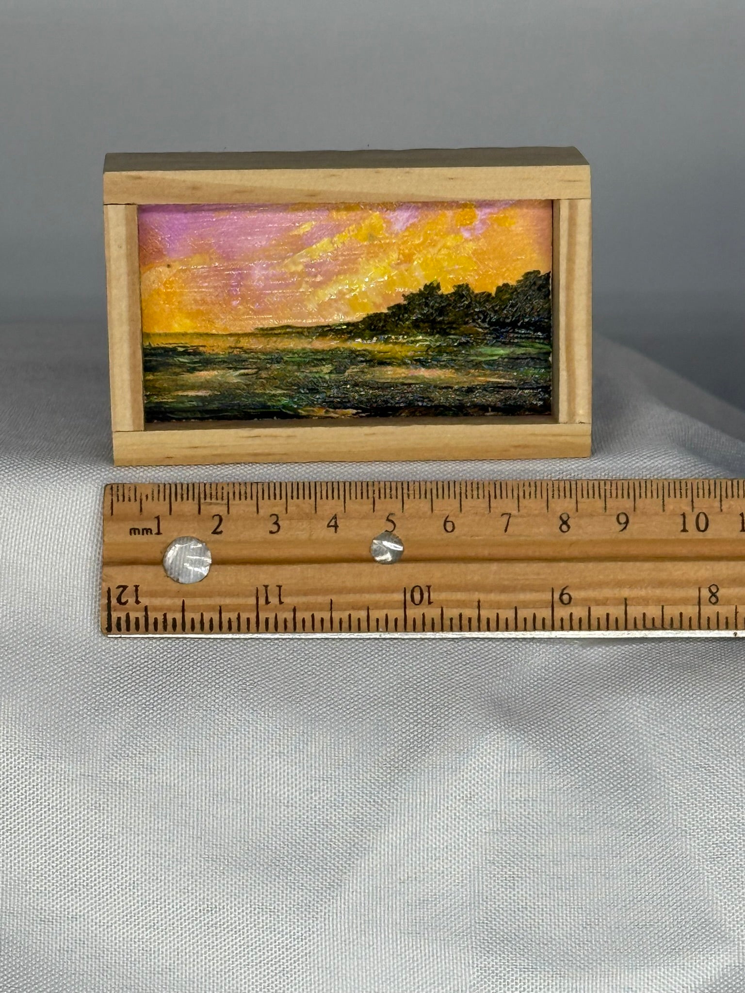 Mini Wood Block Painting #29. Oil on reclaimed wood. Framed in recycled framing material. Sizes range from 2” to 4” with and over all height of 1”. If there is a specific location you would like, please feel free to email me and I can show what I have.