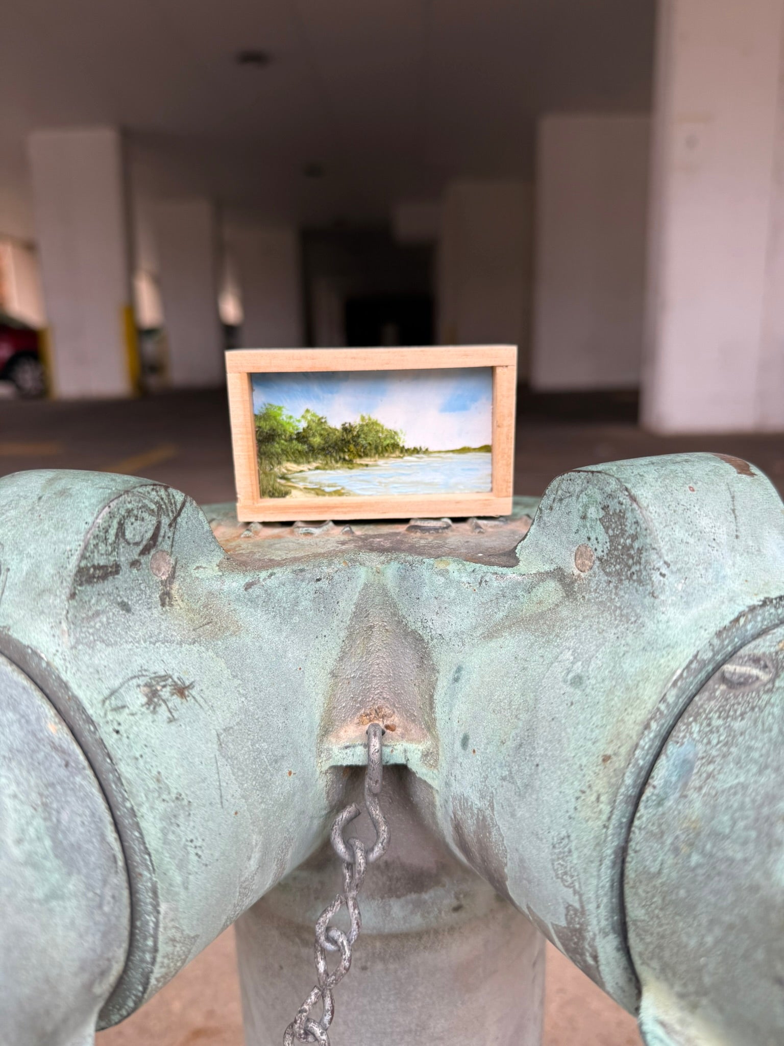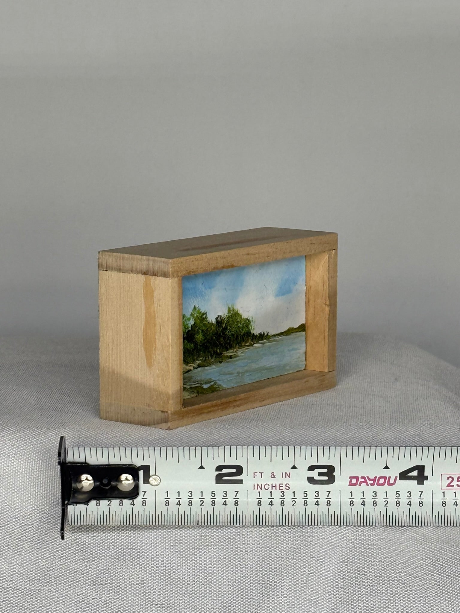Mini Wood Block Painting #6. Oil on reclaimed wood. Framed in recycled framing material. Sizes range from 2” to 4” with and over all height of 1”. If there is a specific location you would like, please feel free to email me and I can show what I have.