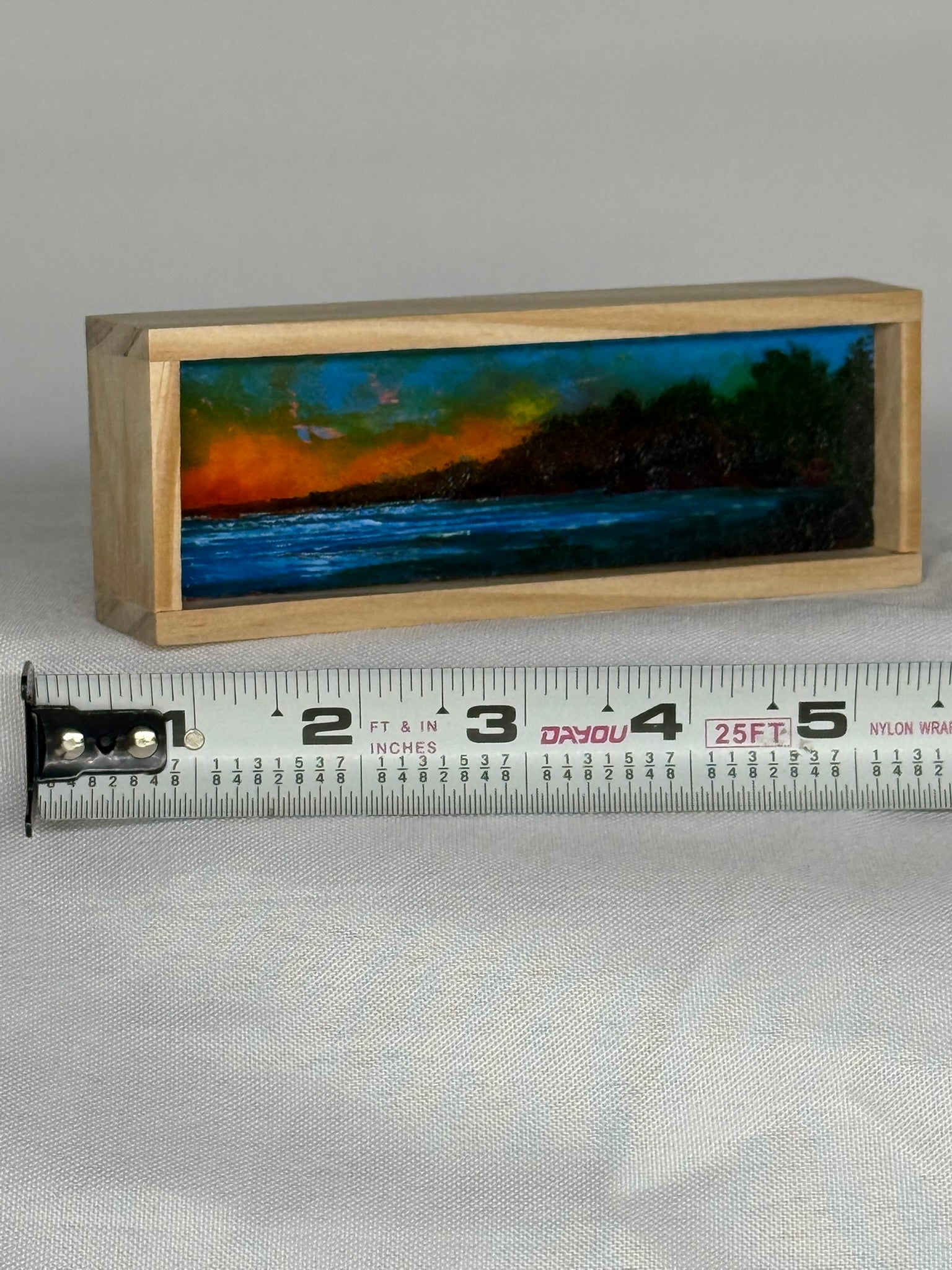Mini Wood Block Painting #70. Oil on reclaimed wood. Framed in recycled framing material. Sizes range from 2” to 4” with and over all height of 1”. If there is a specific location you would like, please feel free to email me and I can show what I have.